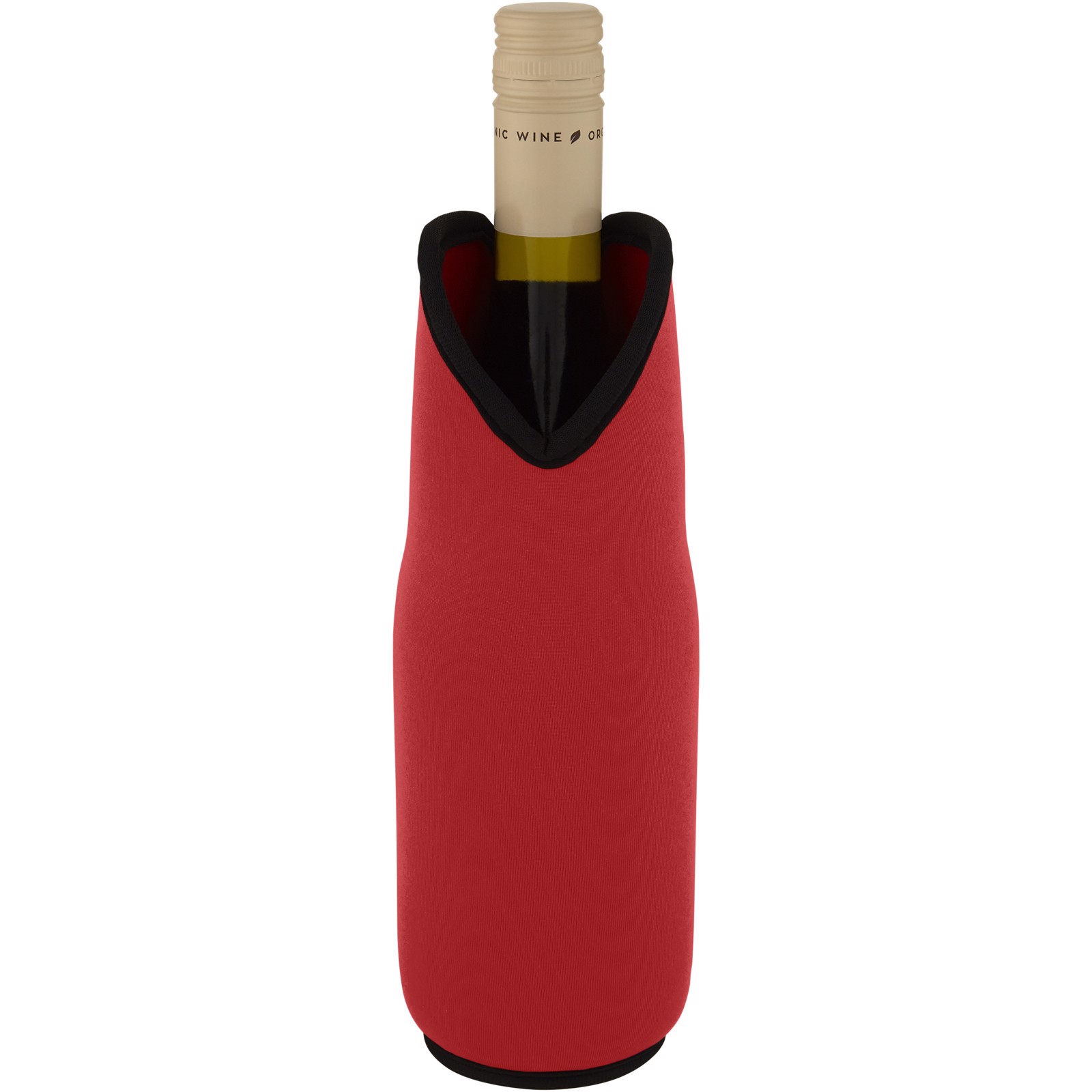 Recycled neoprene wine sleeve holder with fine stitching and extra insulation to keep the wine cool for a longer time, while also making the bottle comfortable to hold. It stretches and expands to fit all kinds of bottle sizes to hold the bottle tight in place. It also protects your wine bottle from breakage during transport.