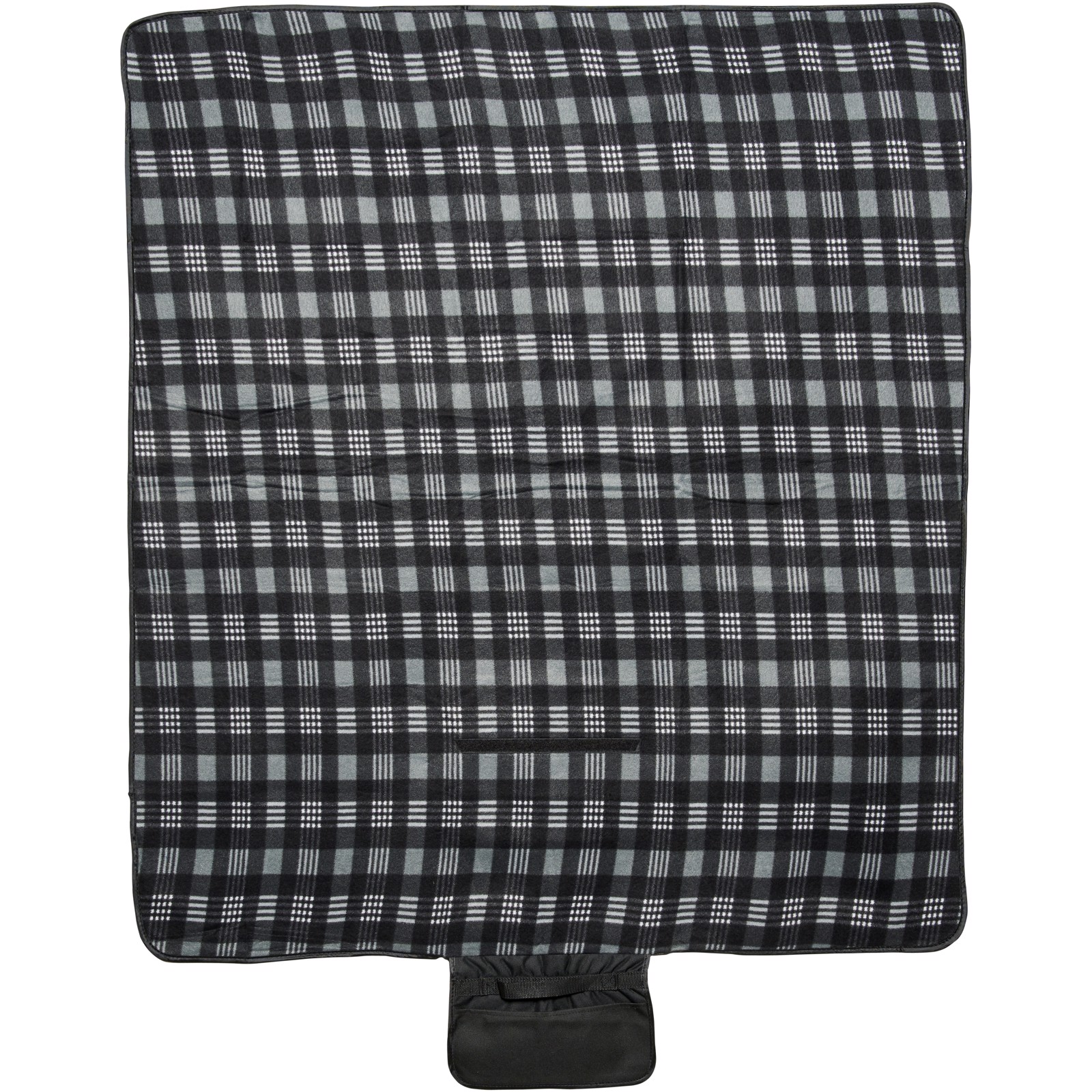 Classic tartan patterned blanket with a handle for easy carrying. Includes a front pocket on the flap. Blanket size is 135 x 120 cm.