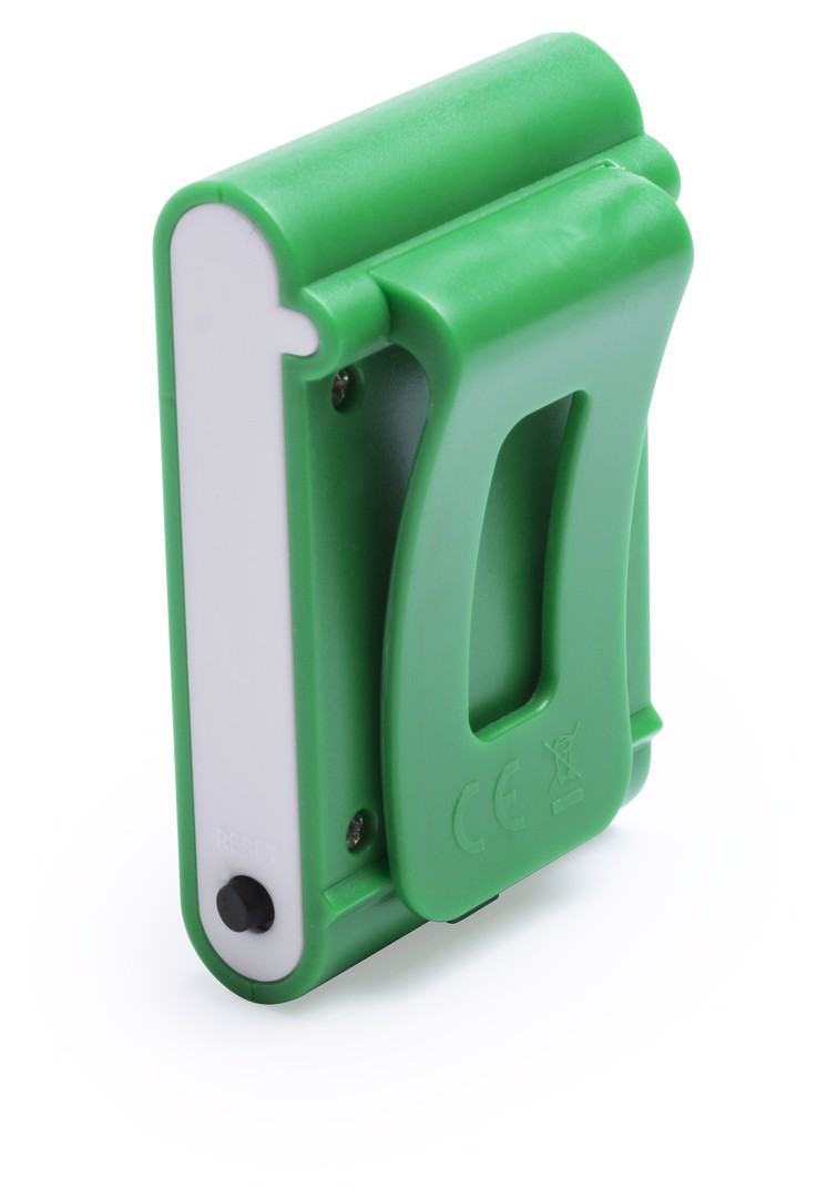Practical pedometer step counter in an original bicolor design with soft body in vivid tones and belt clip. Configurable with functions: steps, distance travelled and calories consumed. Button cell battery included with protective film and presented in an individual box. Calculates Steps, Distance Covered and Calories Burned. Button Battery Included