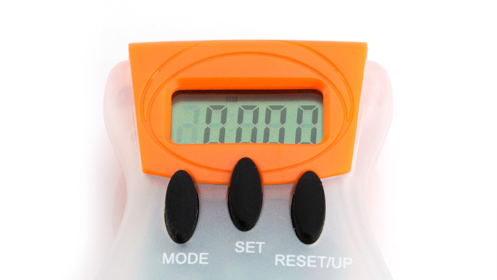 Practical pedometer step counter in an original bicolor design with soft translucent body, accessories in bright tones and fixing clip. Configurable with functions: steps, distance travelled and calories consumed. Button cell battery included and presented in an individual box. Calculates Steps, Distance Covered and Calories Burned. Button Batteries Included