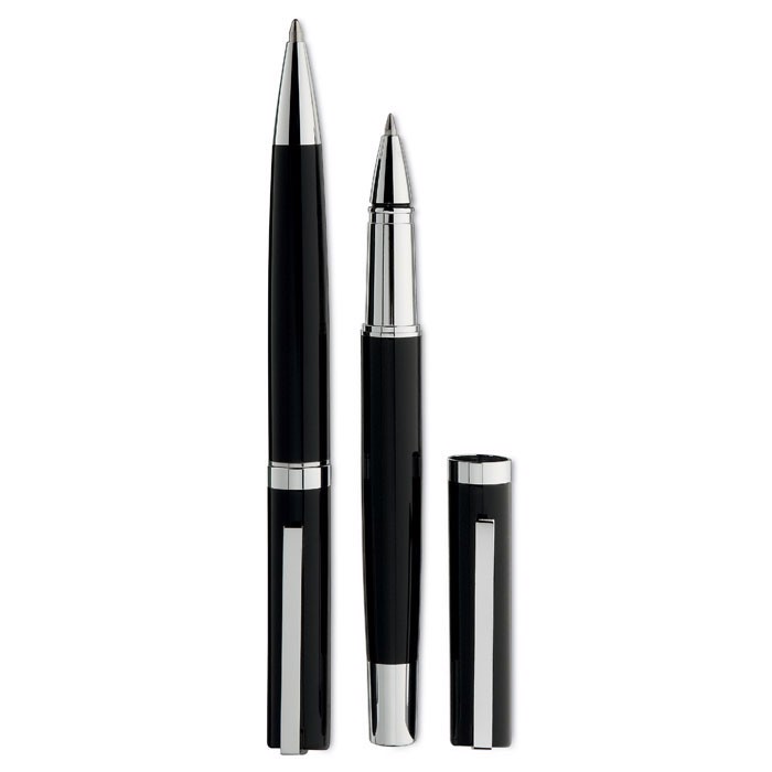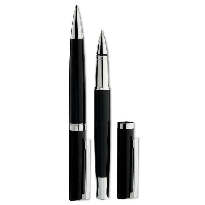 Pen set in gift box. Twist ball pen and roller pen. Blue ink.