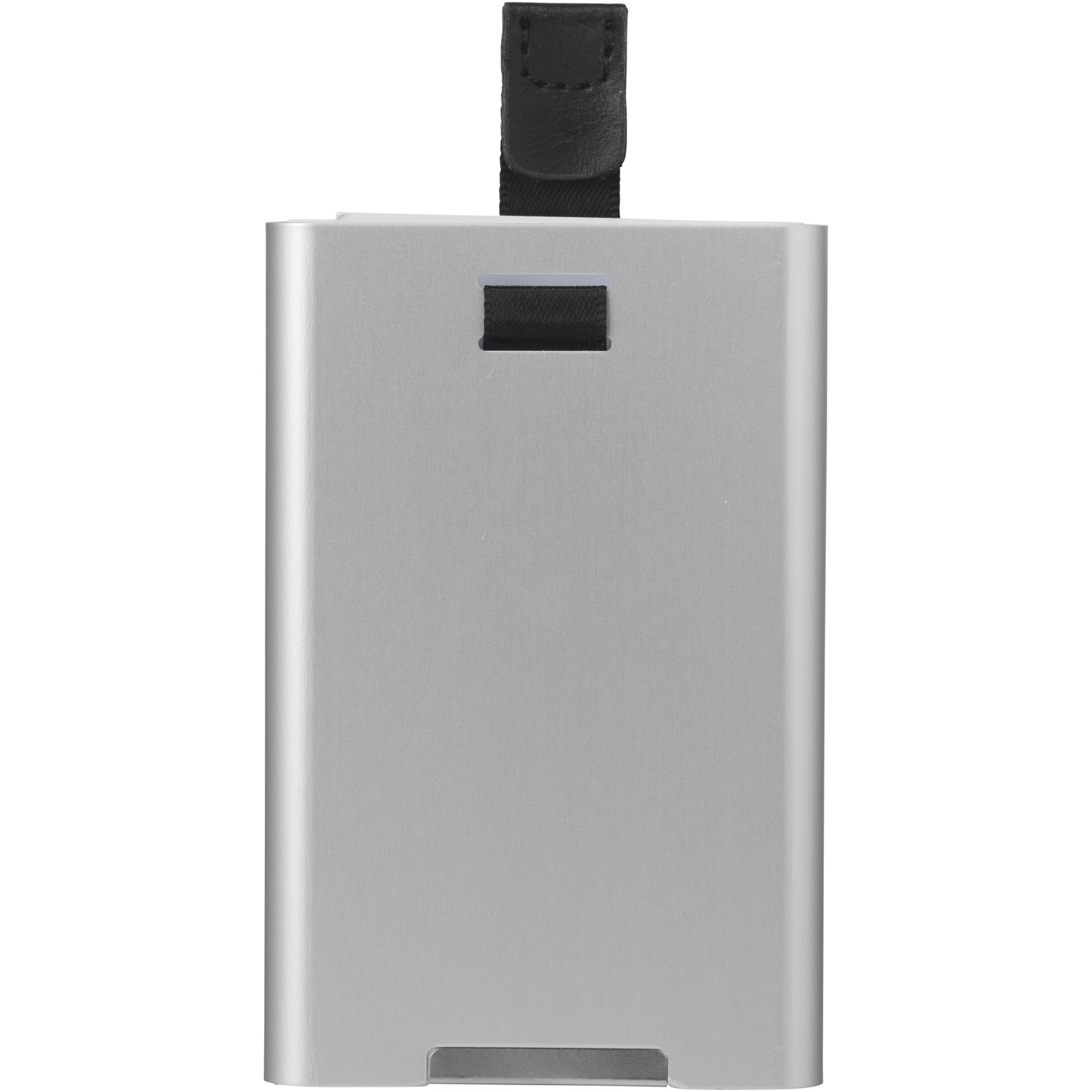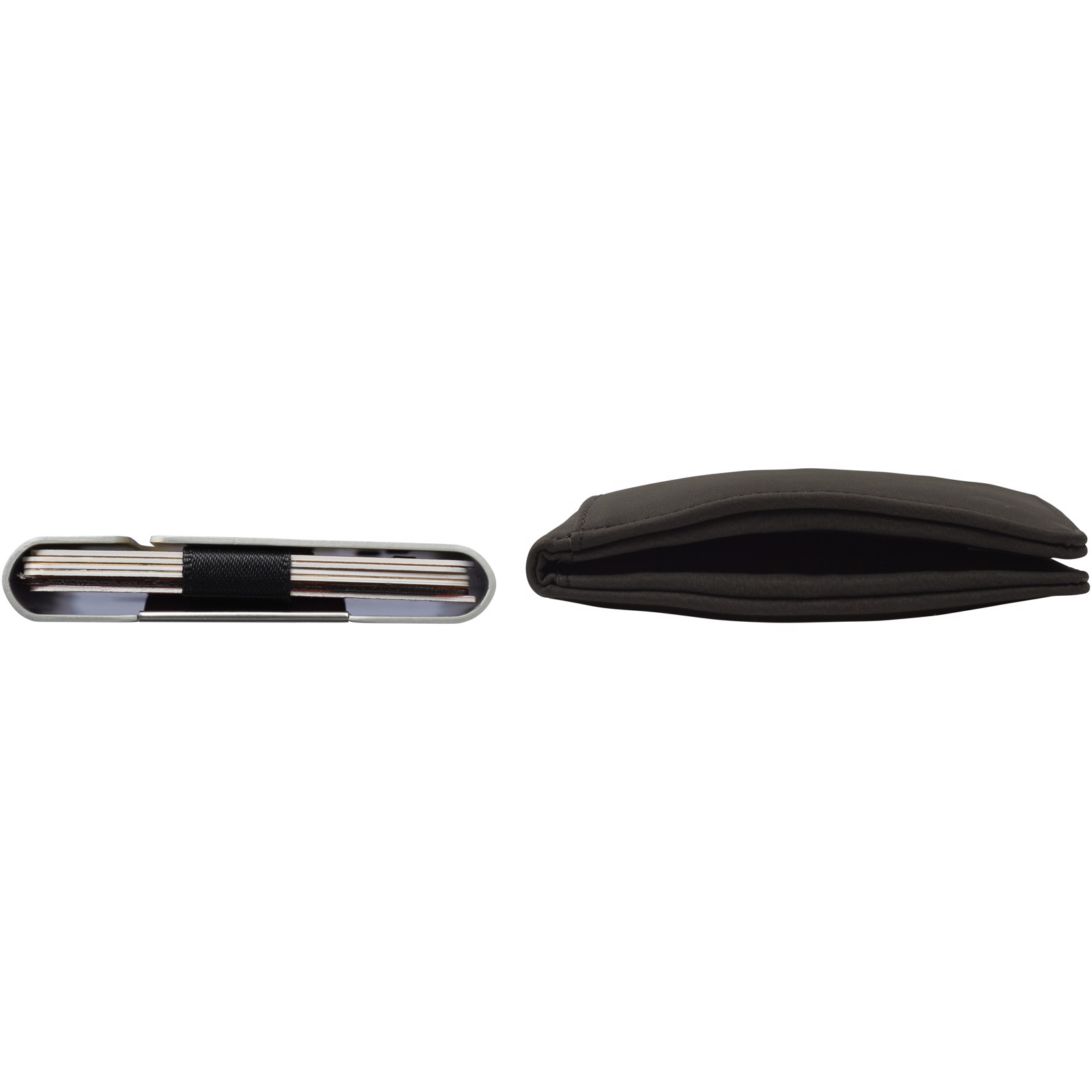 Aluminum card holder protects your cards from identity theft, breaking and damage. Simply take out the cards using the cord. Holds up to 9 cards. Presented in a gift box.