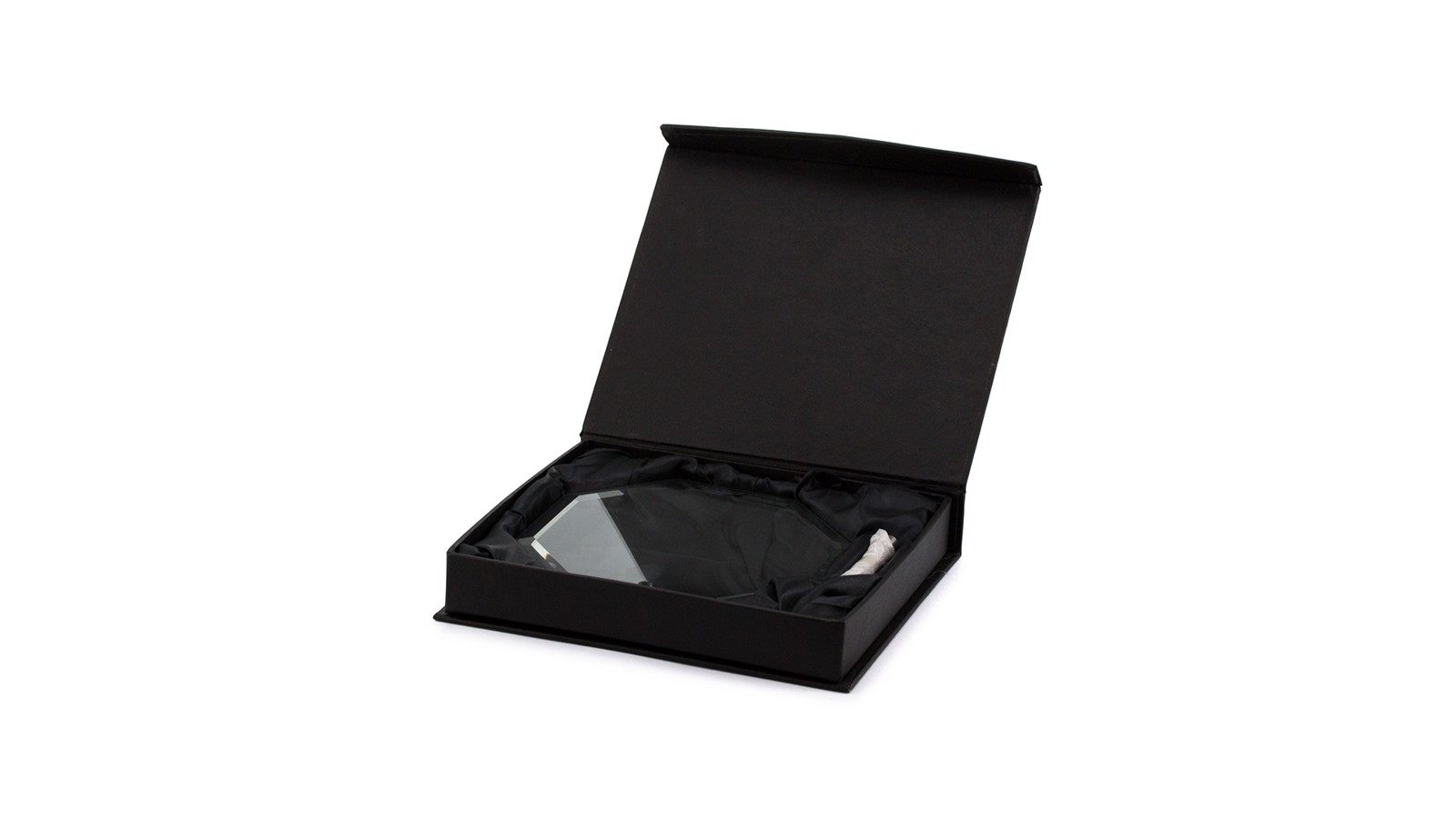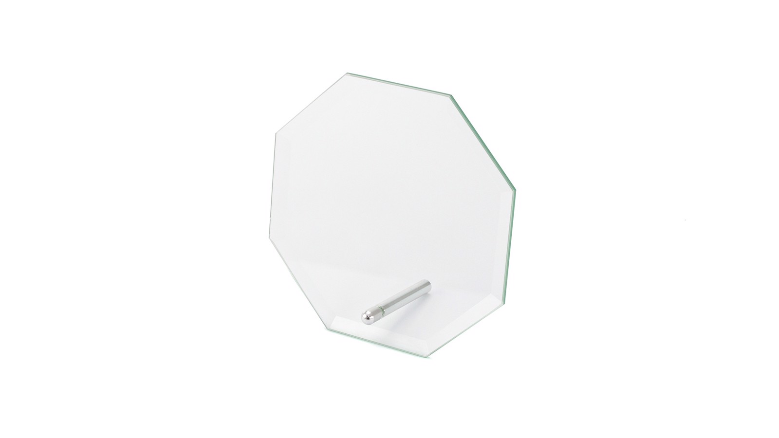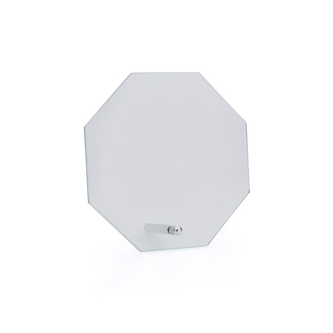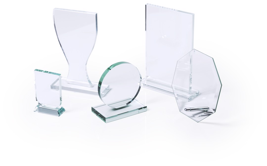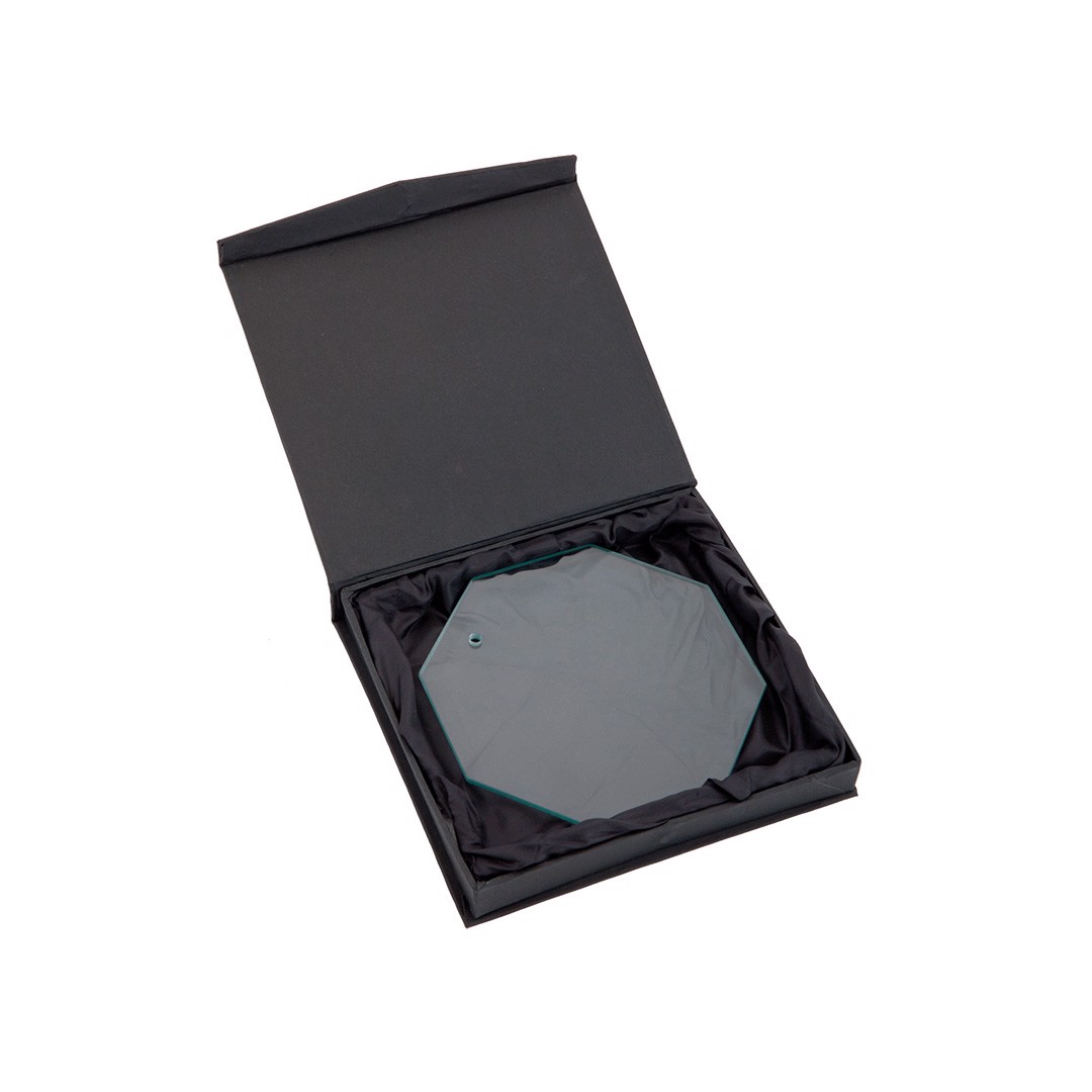 Trophy plate in thick glass with elegant octagonal design. especially designed for laser printing and presented in an individual protective case.
