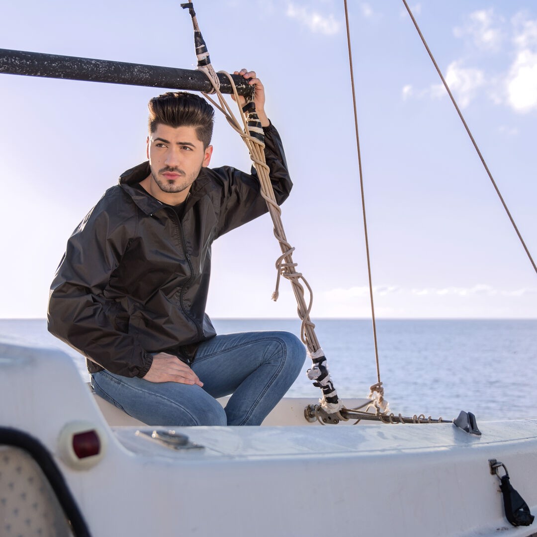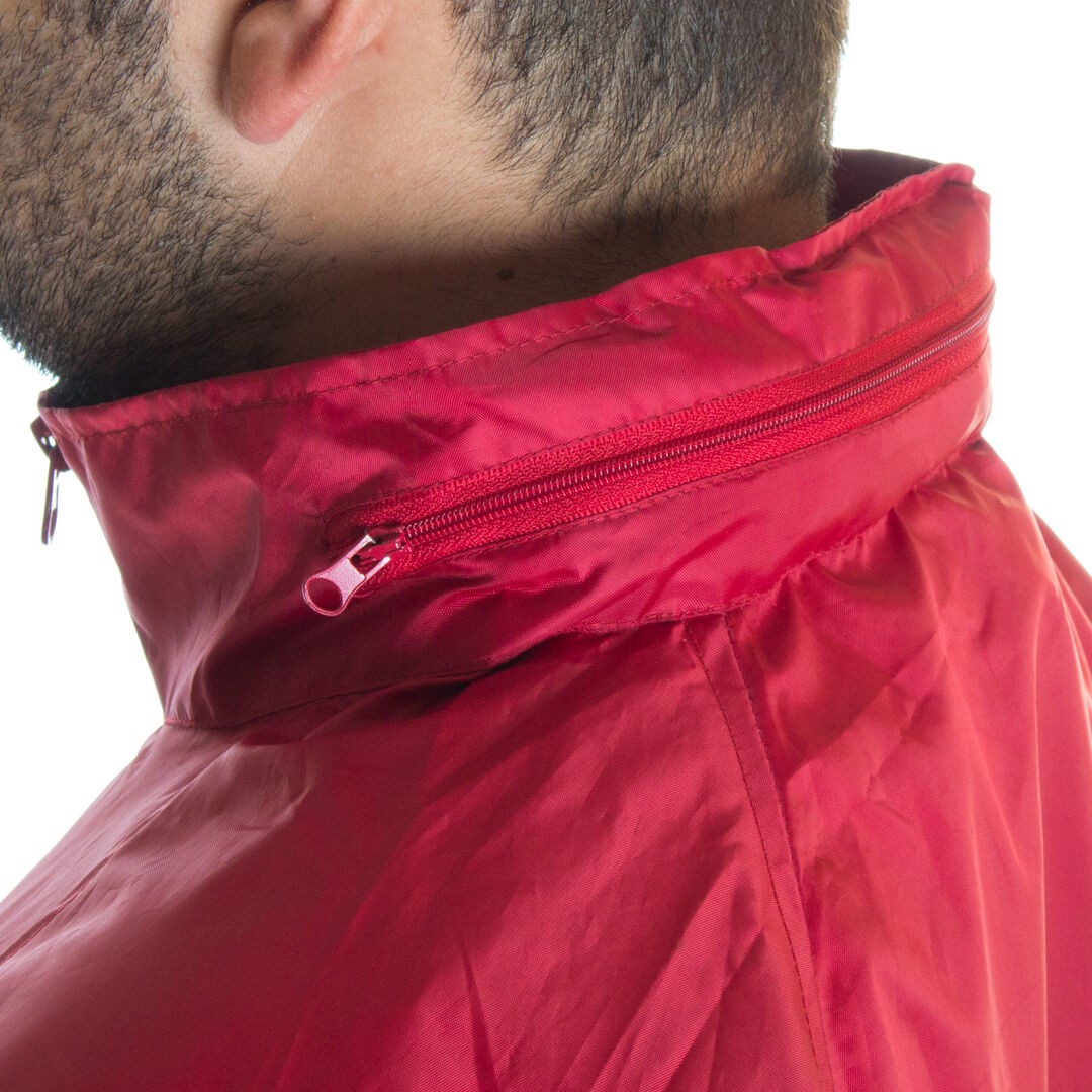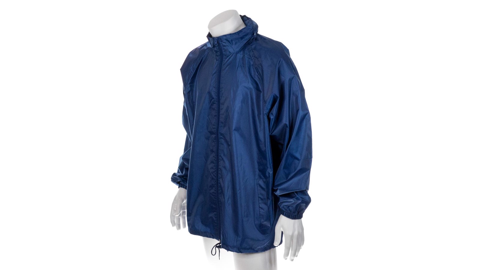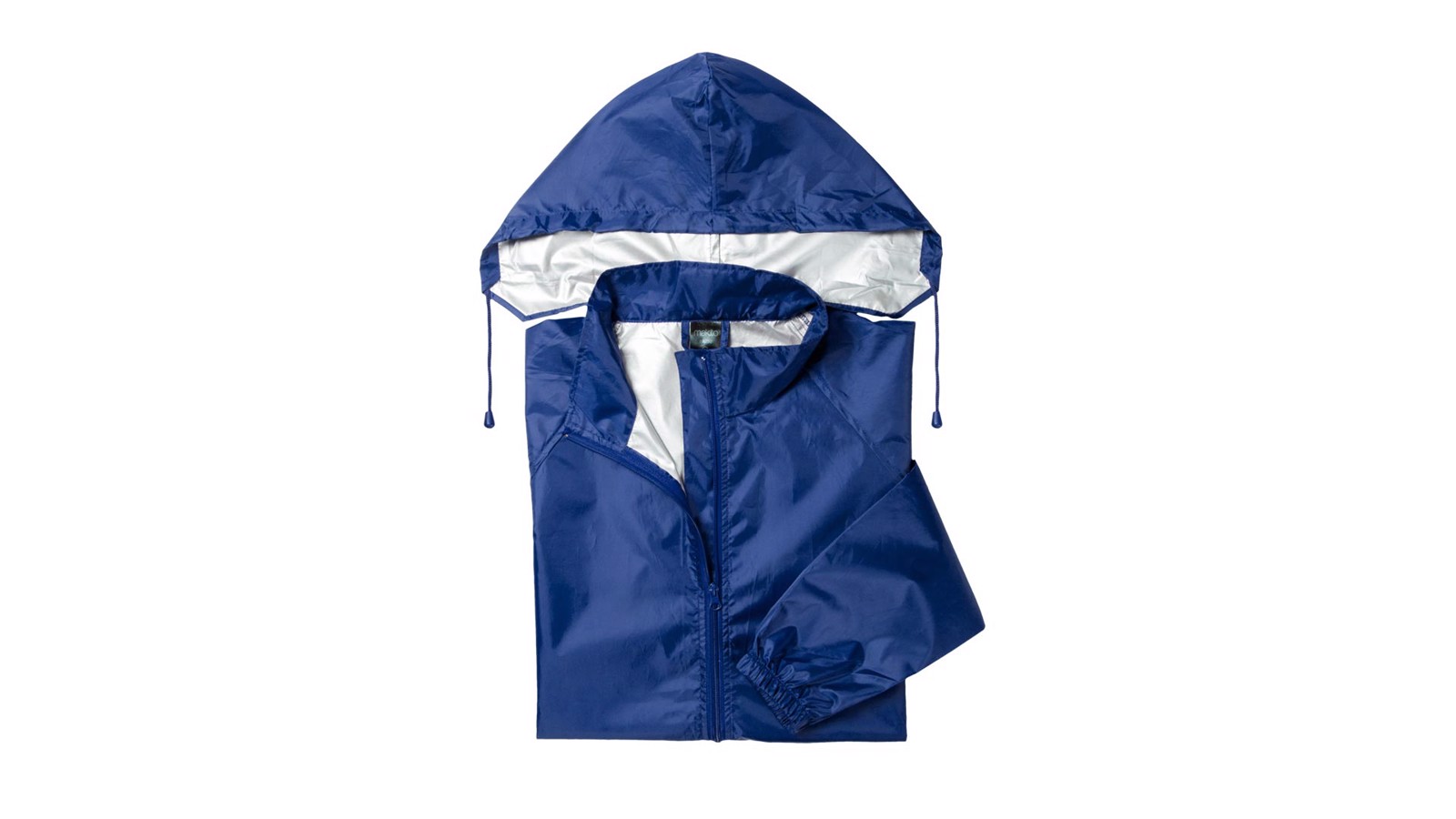 With built-in zipper closure hood on collar with strings. Main zipper closure and side/inside pockets. Lace on waist with adjustment accessory and inside lined in silver polyester. Available in sizes M, L, XL, XXL. Sizes: M, L, XL, XXL