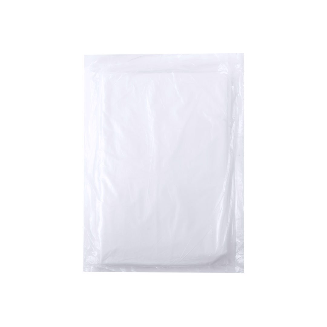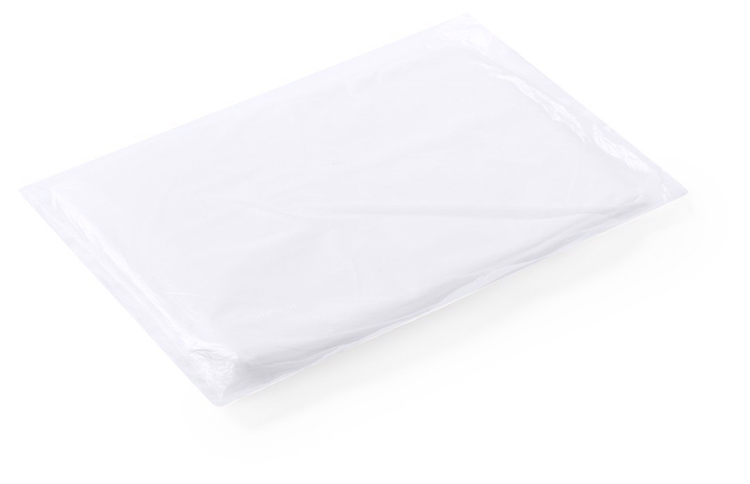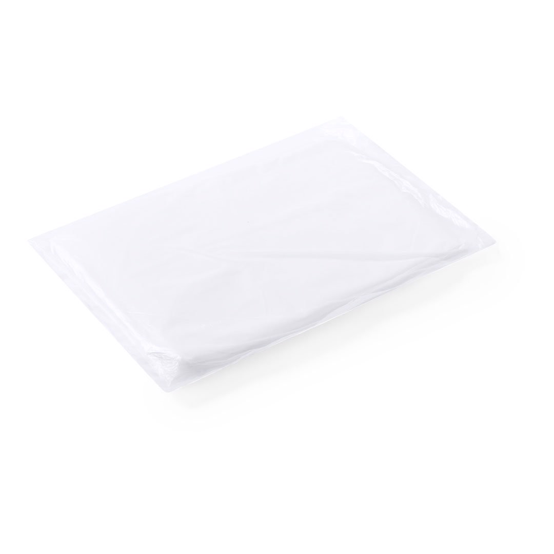 Adult size poncho, manufactured in resistant PLA material -PolyLactic Acid-, obtained from 100% natural resources like corn starch, yucca or sugar cane, becoming 100% compostable at the end of its life span. Size 127x102 cm, one size fits all. Presented in an individual PLA bag with material distinctive. One Size. Adult. 127 x 102 cm