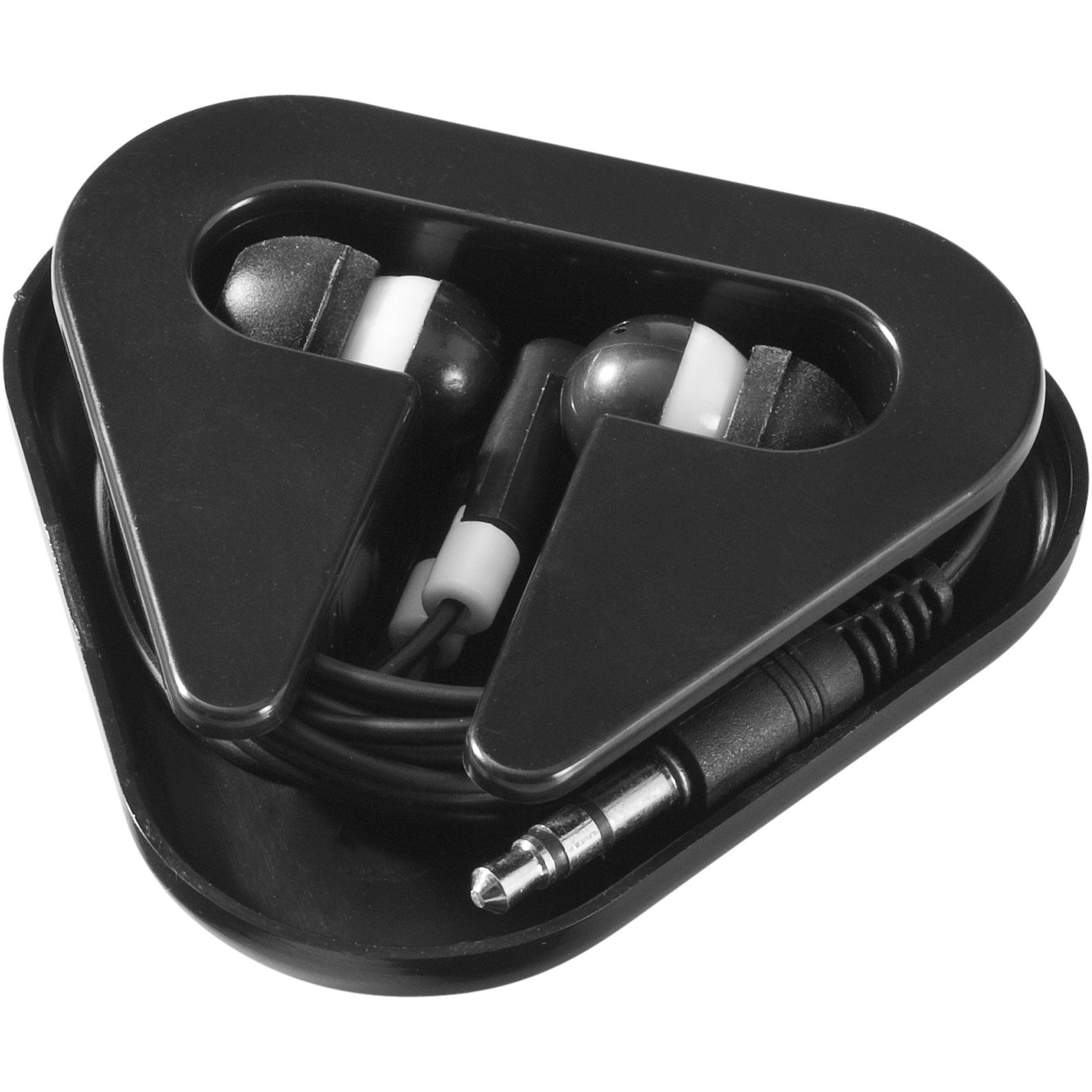 The Rebel earbuds are straightforward earbuds that make it easy to listen to music anywhere and everywhere. Use with any standard audio device with a 3.5 mm audio jack. The earbuds are made of strong ABS plastic and come in a plastic triangular case with cable storage, which protects it well from any external damage. The Rebel earbuds are available in different colour combinations and offer various logo printing options.