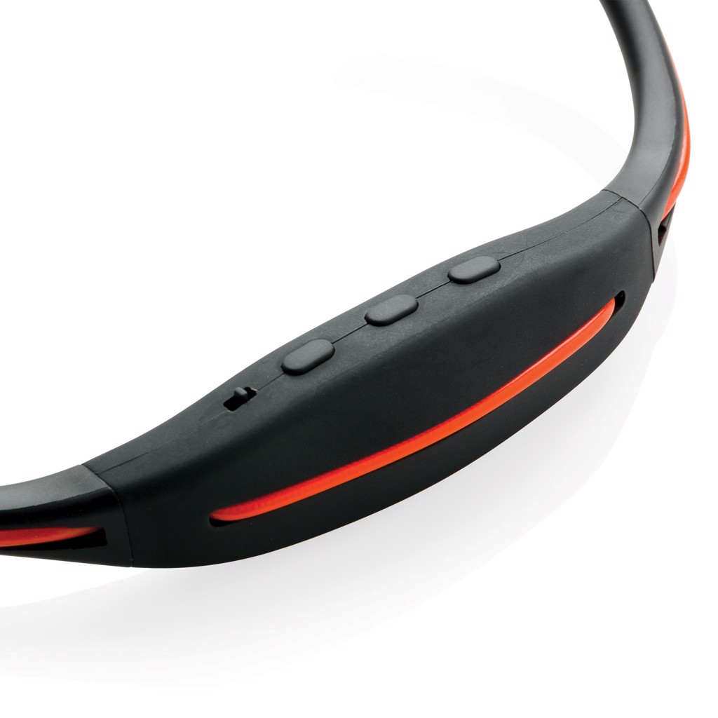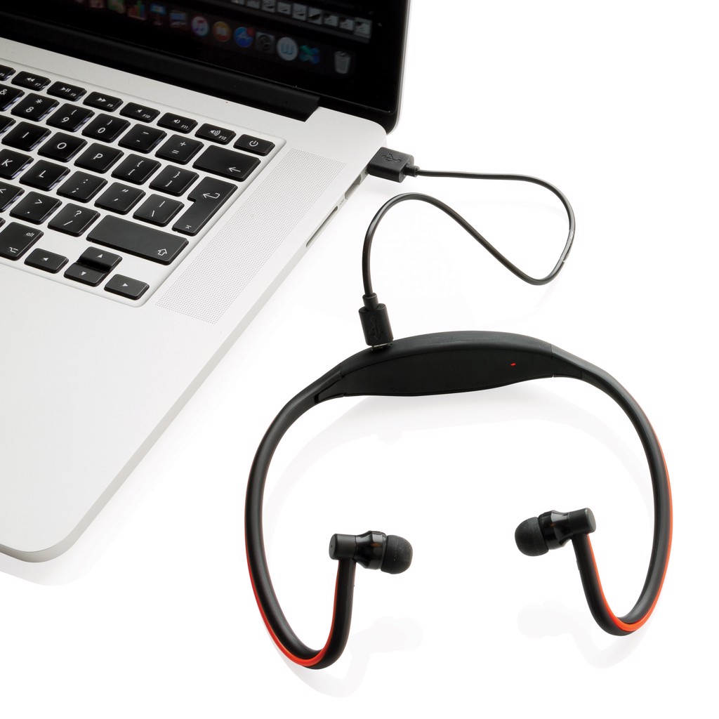 Wireless running headphones with integrated LED light for optimal safety. These sport headphones have an optimal weight distribution for a perfect and comfortable workout experience. The integrated red LED light allows you to work out safely in a dark environment and makes sure you are visible to other users. With 180 mAh built-in battery, it can be used up to 2-4 hours (depending on usage of LED). With state of the art wireless BT 4.2 connection up to 10 metres of operating distance. Includes string pouch to store and carry these earbuds to your workout.