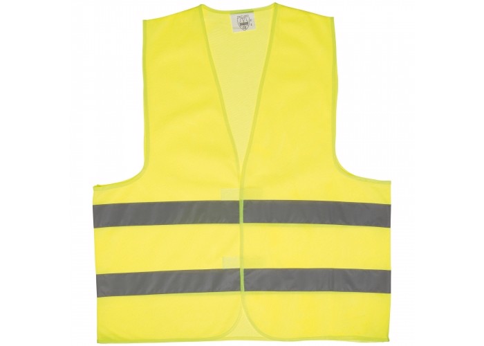 Yellow safety vest for adults with two reflecting strips and velcro closure. Made of firm but light polyester which makes the vest comfortable to wear. Complies with the European EN20471 standard, class 2/2.