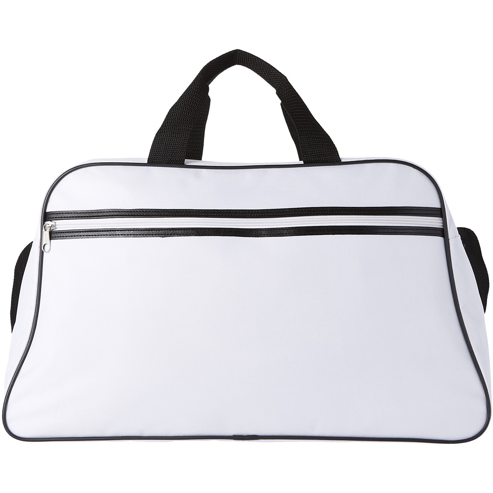 Sport bag with zippered main compartment and front pocket with zipper closure.