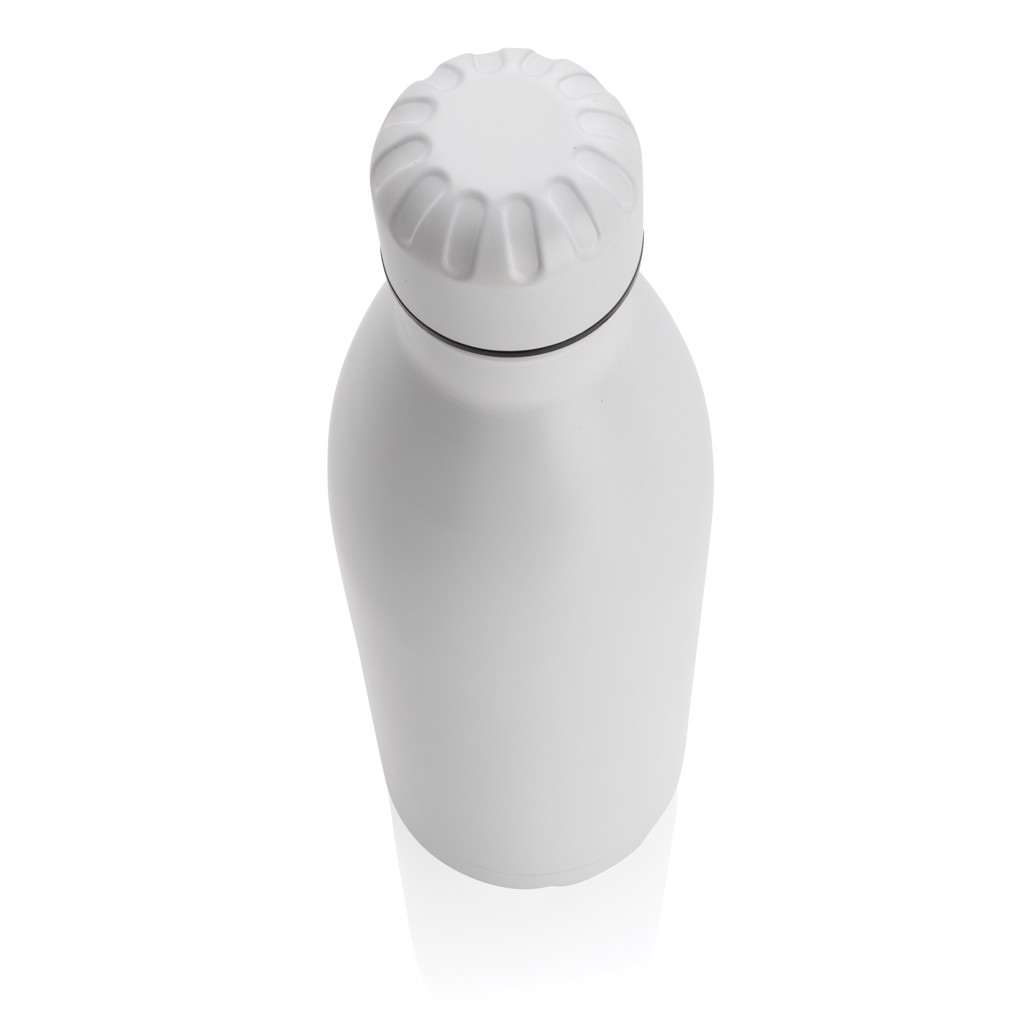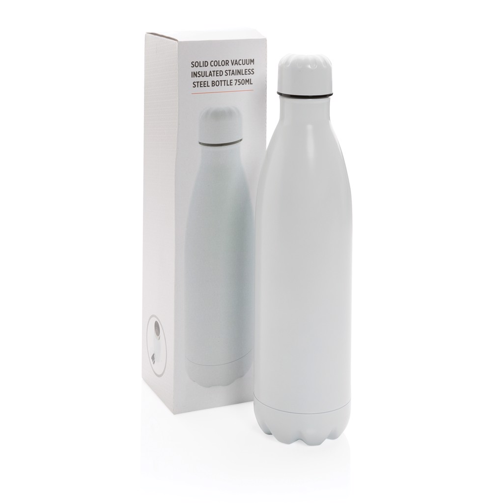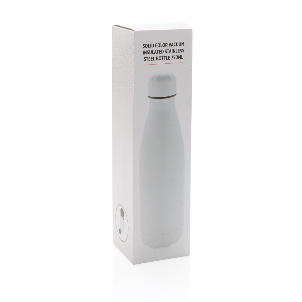 Elevate your daily water intake with this solid colour vacuum insulated stainless steel bottle. The bottle keeps chilled beverages cold for up to 15 hours and hot drinks warm for up to 5 hours. With a base that fits in most cup holders, this sleek looking water bottle will keep you hydrated on the go wherever you are. Capacity 750ml.