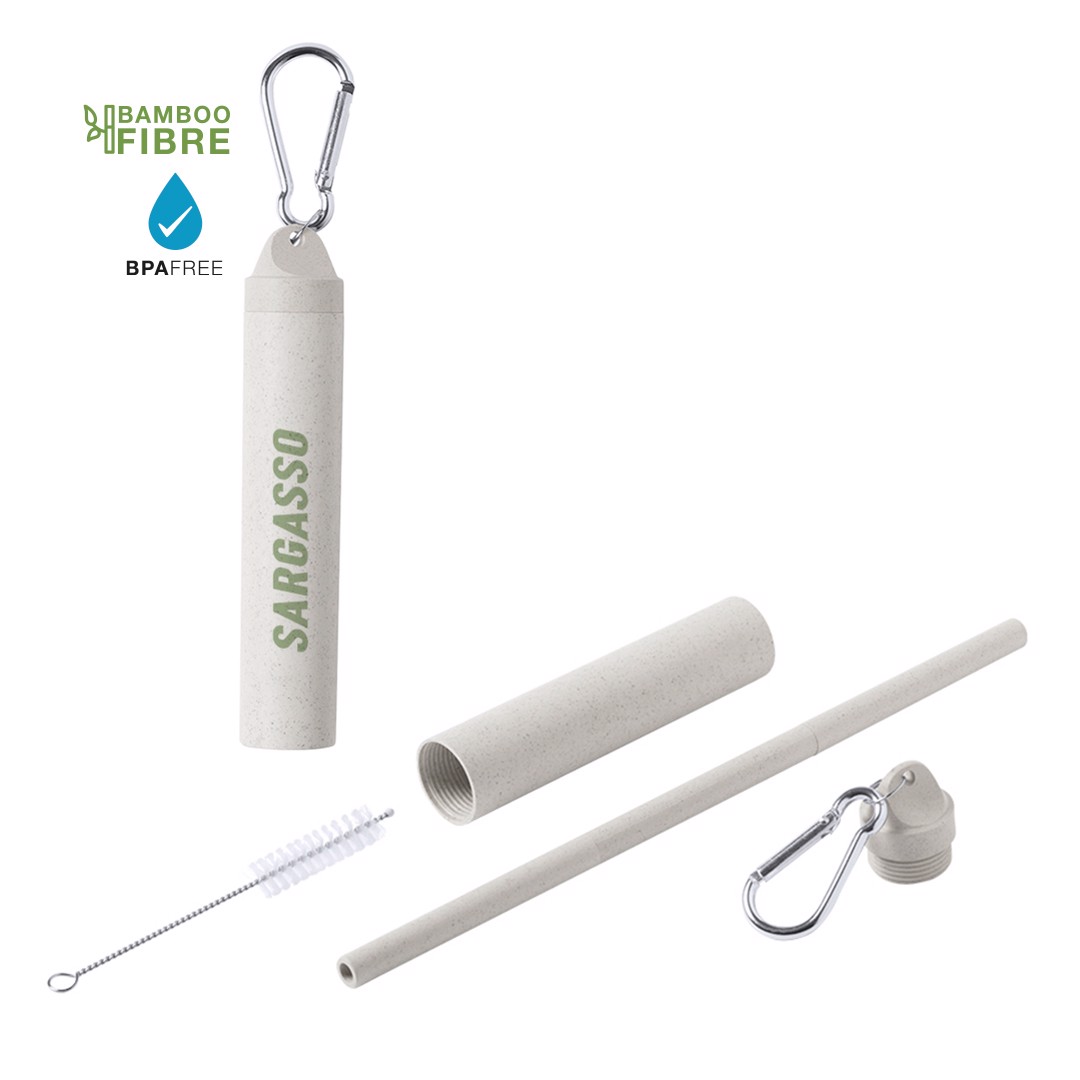 Reusable and extensible straw in nature line. Made of bamboo fibre,i ncluding cleaning accessory and presented in a self material case with carrying carabiner. Reusable. Cleaner Included