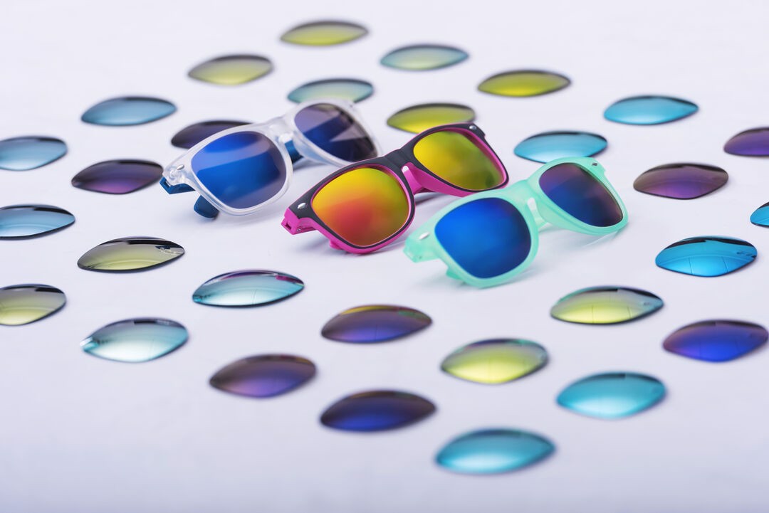 Sunglasses with UV400 protection of classic design. With translucent frame finish, fun colored arms and matching color mirrored lenses. UV400 Protection