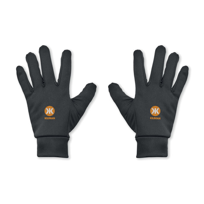 Tactile sport gloves for smartphone in polyester. Two fingers with touch function with anti-slip dots on palm and finger in PVC.