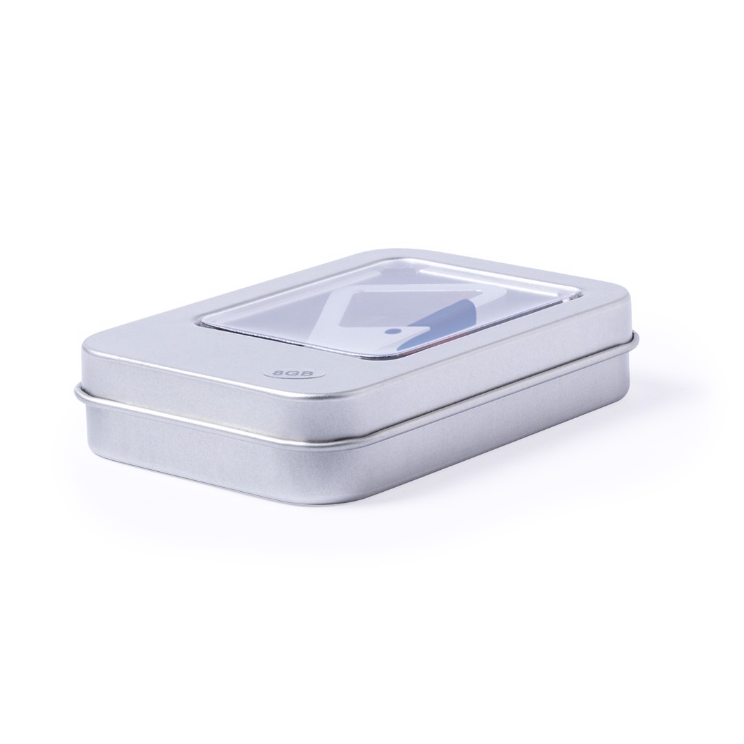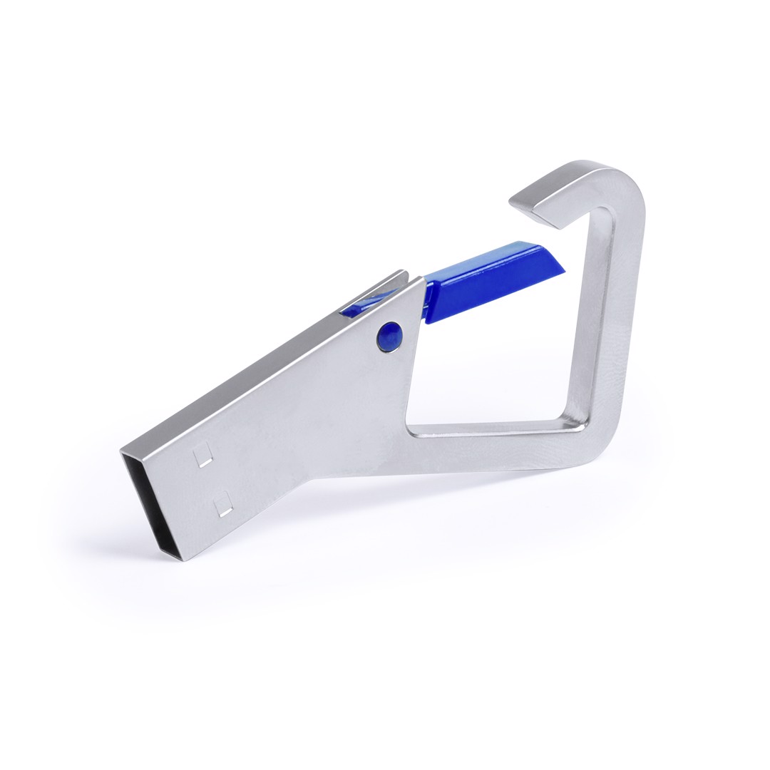 8GB USB flash drive in metal, with original carabiner closure design, in a wide range of tones. Presented in an individual metal case with window and inside soft foam. Individual Presentation