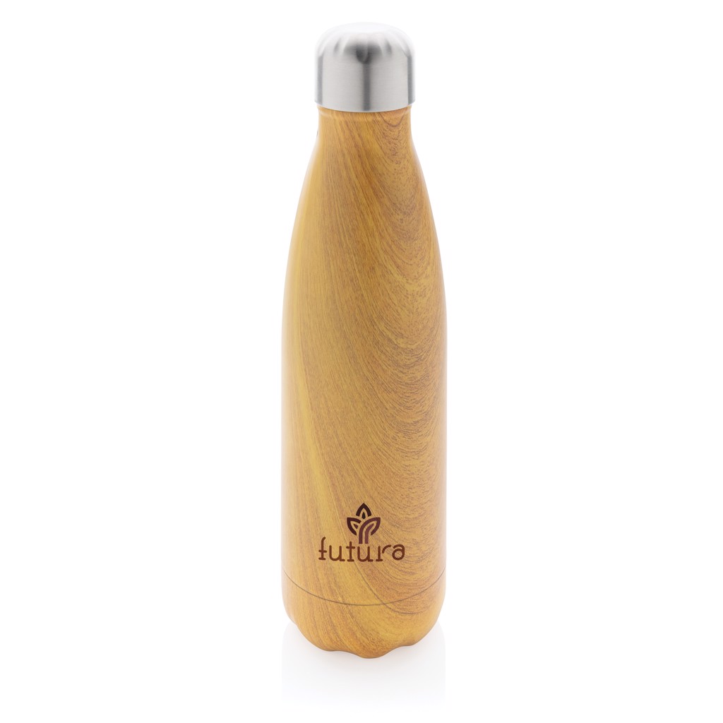 Vacuum insulated stainless steel bottle with wood print - Yellow