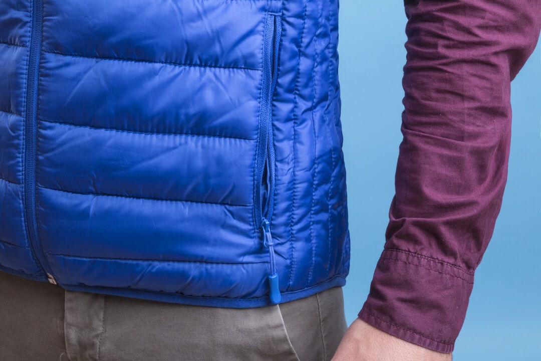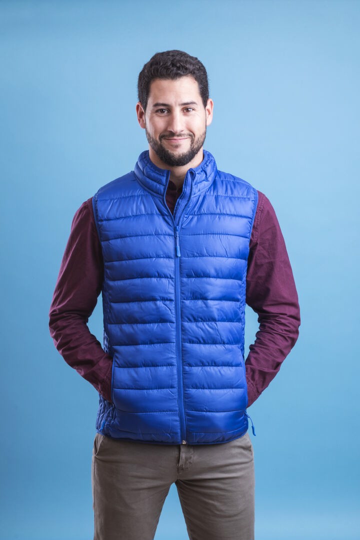 Vest in warm and soft, 100% polyester material. Extra lightweight material, water resistant and windbreaker, with inside padding. Zipper closure with strap in puller and large side pockets. Covered neck zipper and side pockets with pullers. Including a handy carrybag. Available in sizes S, M, L, XL, XXL. Wind and Water Resistant. Polyester Pouch Included. Sizes: S, M, L, XL, XXL