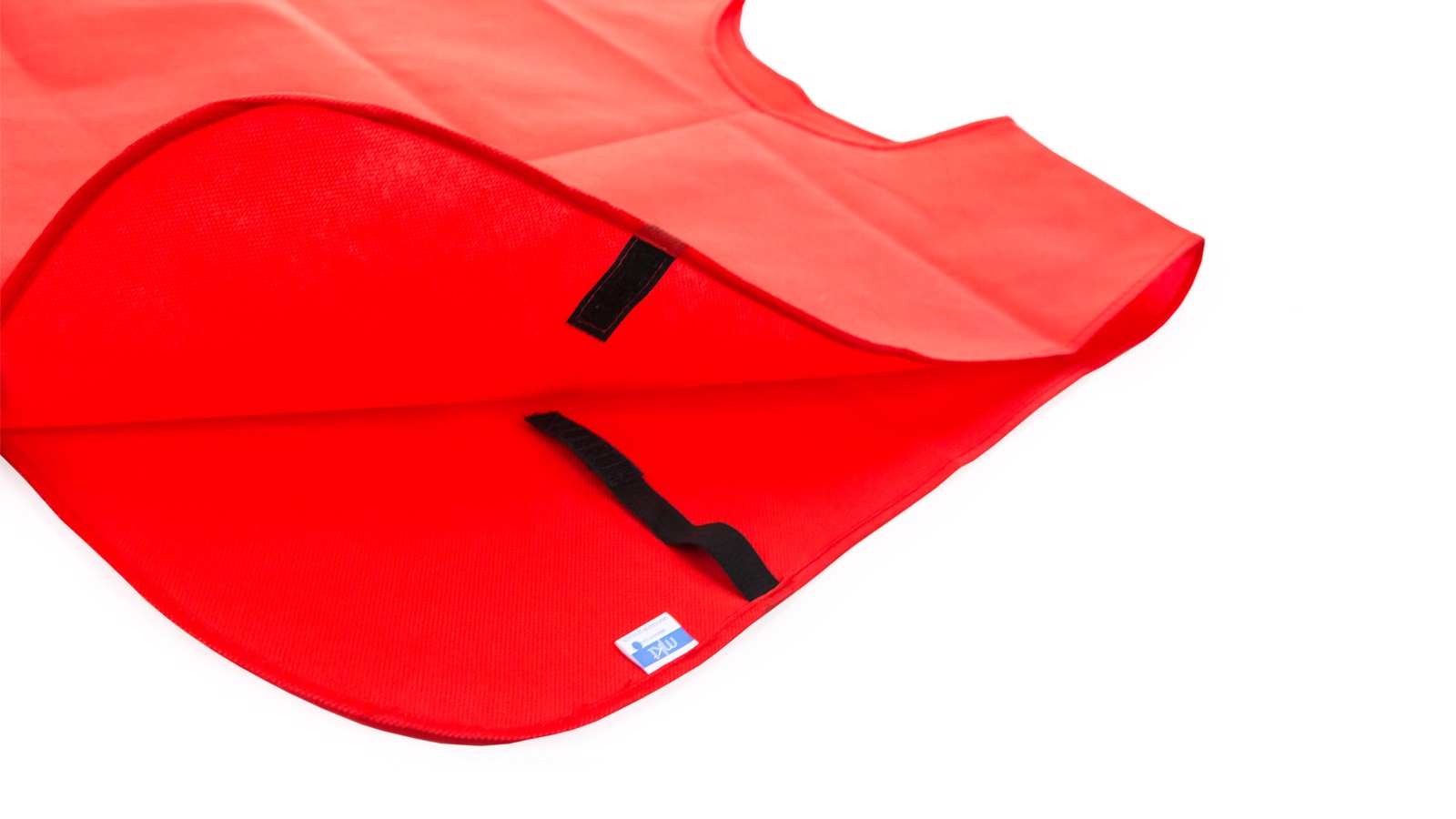 Sporty adult bib in resistant non-woven with bright tones and elasticated sides. One size fits all. One Size. Adult