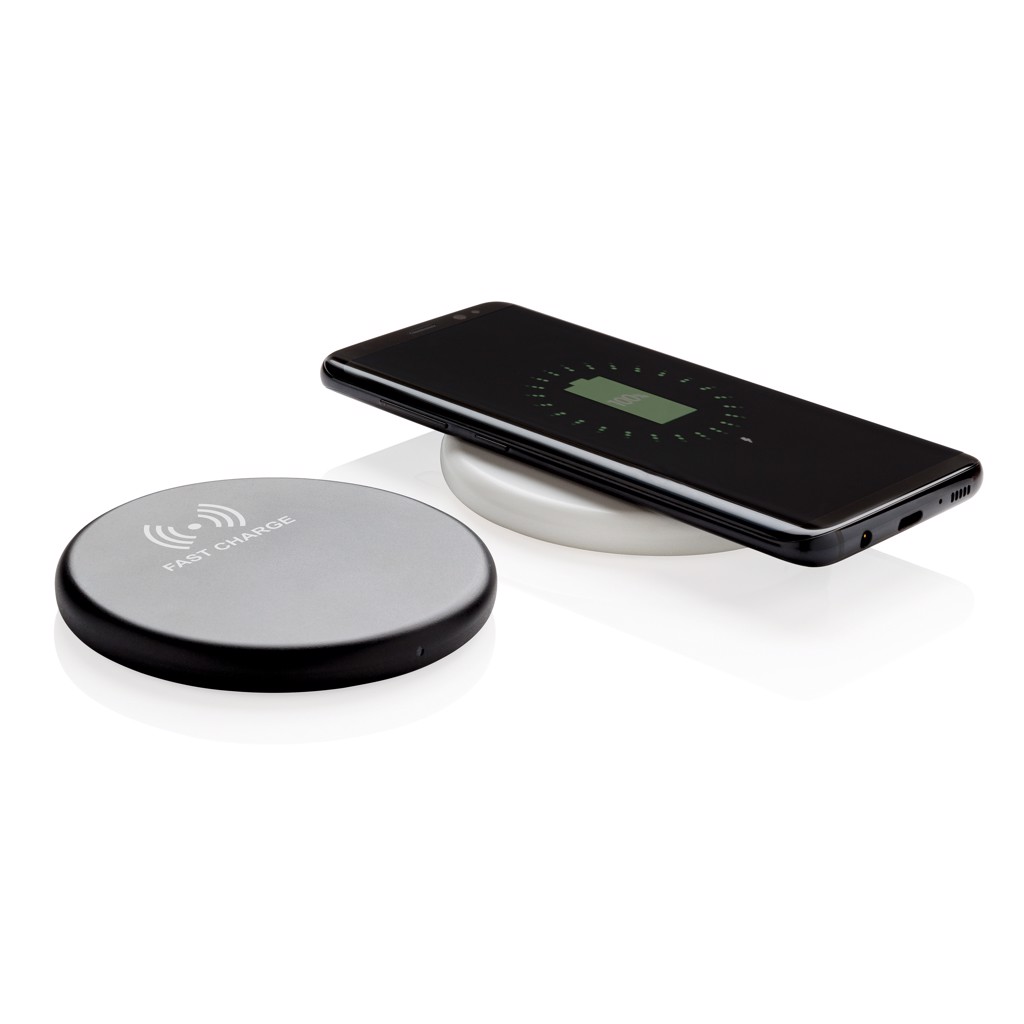 Charge your mobile devices without connecting a cable. Just place your mobile phone on the pad and wait for the charging notification to appear. The charging pad supports 10W charging to charge your phone twice as fast as most other wireless chargers in the market. With air holes in the bottom to keep the charger cool while charging and rubber strips to ensure stability. Wireless charging compatible with Android latest generations, iPhone 8 and up. Input: 5V/2A. Wireless Output: Output: 9V/1.1 10W.