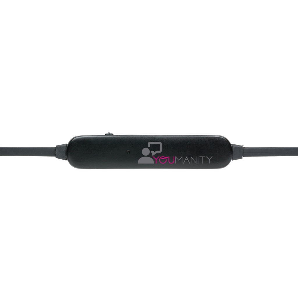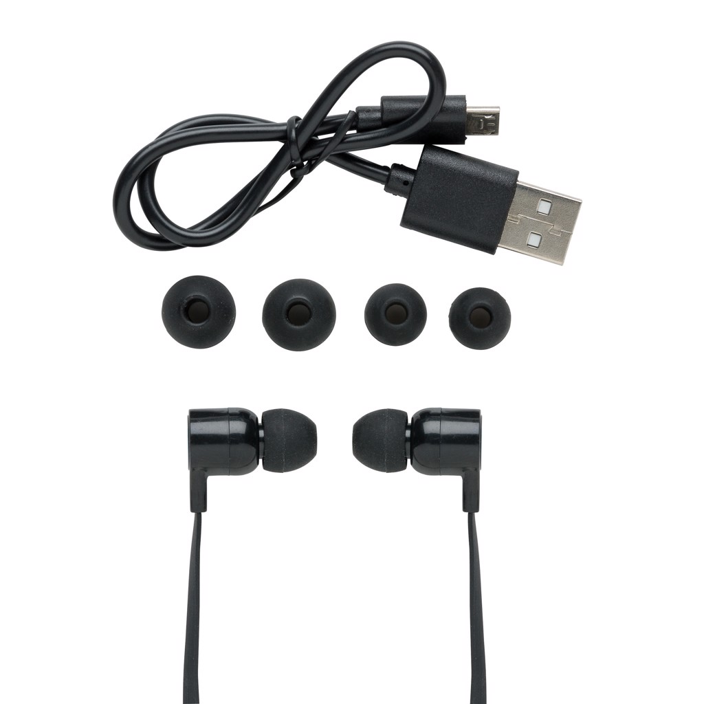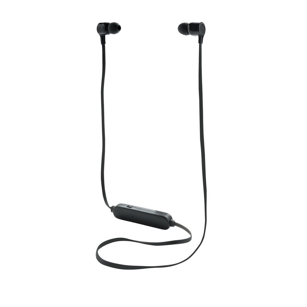 Wireless earbuds with TPE cable for listening to your favourite music without any wired connection. With 55 mAh battery that allows a maximum playing time of up to 3 hours. With BT 4.0 for a smooth connection up to 10 metres. Comes with 3 sets of eartips: small, medium and large to ensure a good fit for all . Includes micro USB cable.